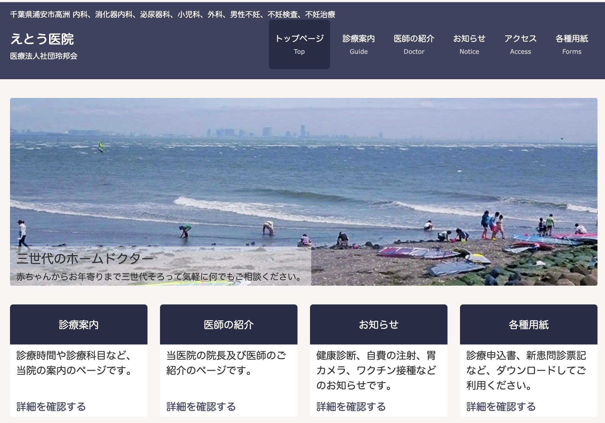 えとう医院 2026 3/03 浦安市 千葉県 関東 無精子症漢方治療不妊検査不妊カウンセリング女医在籍漢方処方男性不妊千葉県浦安市高洲3-2-2 住所 千葉県浦安市高洲3-2-2 電話番号 047-304-3300 ホームページ https://etohiin.com/access/index.html 受けられる診療 無精子症漢方治療不妊検査不妊カウンセリング女医在籍漢方処方男性不妊 千葉県佐倉市にある婦人科・内科クリニック。婦人科一般診療や不妊相談に対応し、地域女性が安心して通える身近な医療を提供。 浦安市 千葉県 関東 この施設をシェア URLをコピーしました! URLをコピーしました! コメント コメントする コメントをキャンセルコメント ※ 名前 ※ メール ※ サイト 次回のコメントで使用するためブラウザーに自分の名前、メールアドレス、サイトを保存する。 施設情報に誤りがある場合はこちらからご連絡ください ■ 対象施設名: ■ 間違っている情報(該当するものすべて選択): 名称住所アクセスホームページ受けられる診療その他 ■ 正しい情報をご記入ください: ■ お名前(任意): ■ メールアドレス(任意): ■ その他・補足があればご記入ください: こちらもオススメ 小泉産婦人科医院 産科婦人科 セントペアレント石間 やびく産婦人科・小児科 アドベンチストメディカルセンター うえむら病院 不妊外来(リプロセンタ-) Naoko女性クリニック 豊見城中央病院 沖縄県立北部病院
