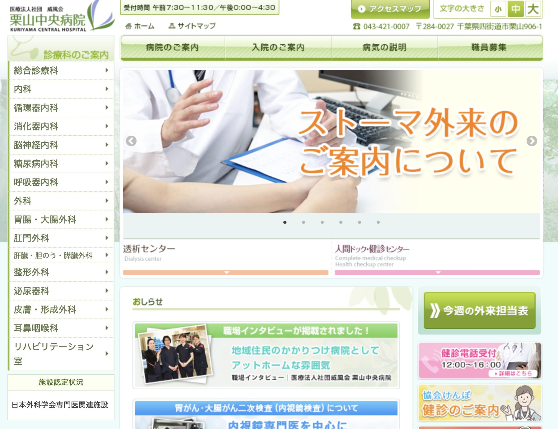 栗山中央病院は千葉県四街道市の救急、労災指定病院です。東関東自動車道、四街道ICより1分、介護老人保険施設「栗の郷」併設。透析センターもあり、遠方への送迎可能なほか、栗の郷に入所しながら透析を受けることも可能です。